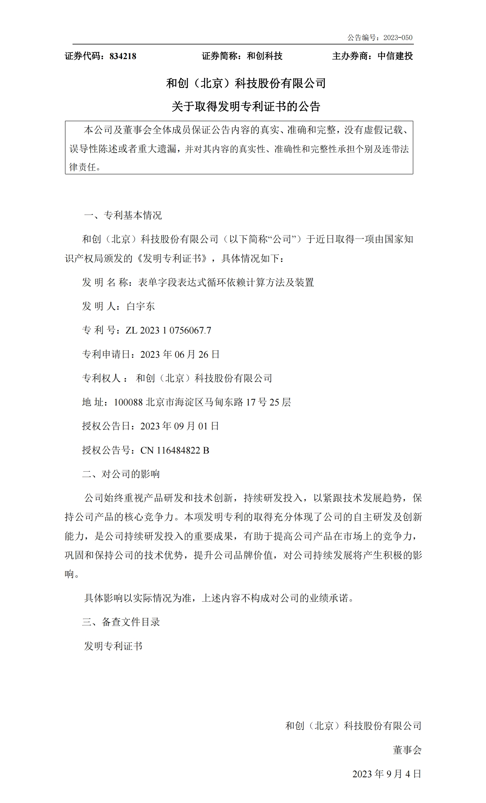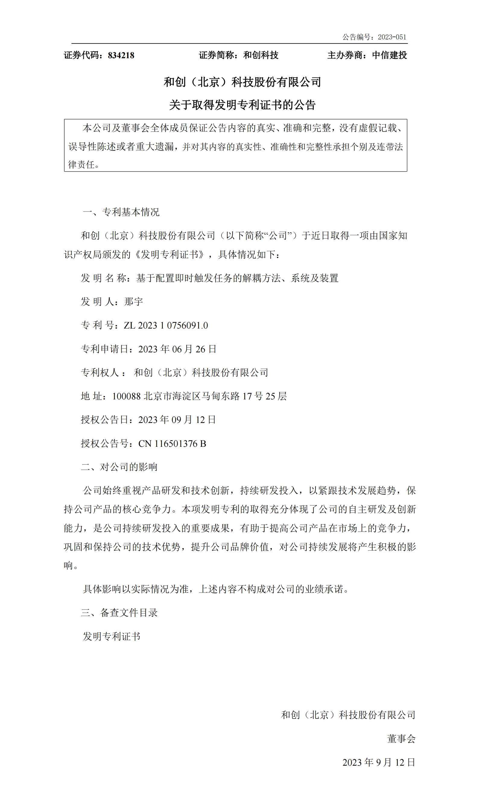 紅圈新聞?|?喜報!和創(chuàng)科技近日連續(xù)取得兩項最新發(fā)明專利!