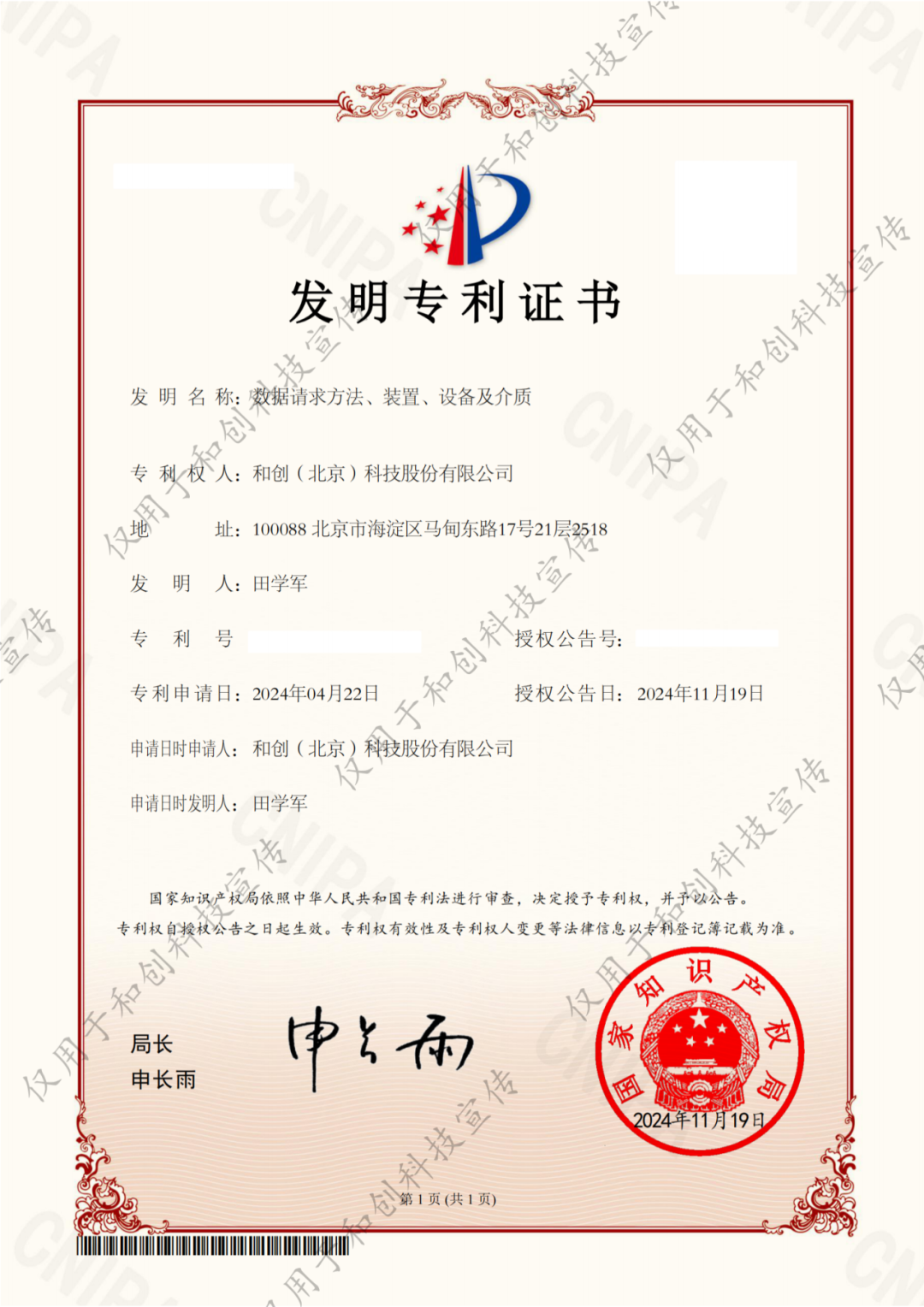 紅圈新聞?|?和創科技取得最新發明專利!數據傳輸和處理技術再升級!
