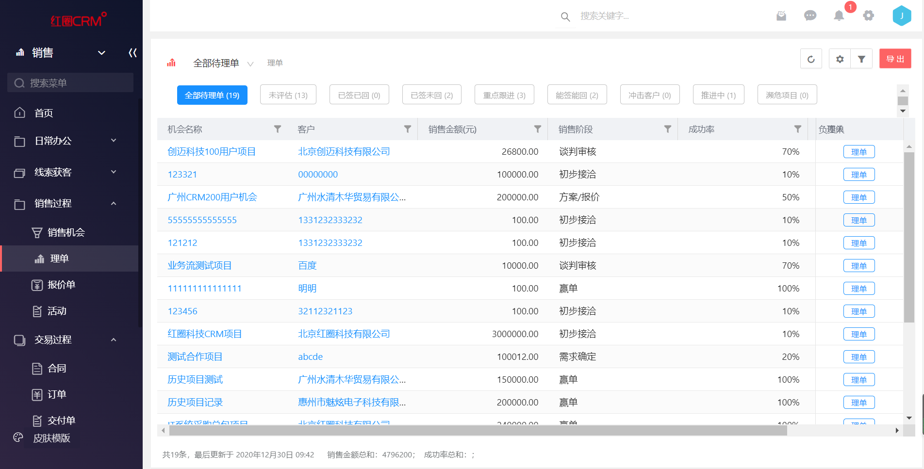 在銷售管理方面,2020 年紅圈 CRM 也有了長足的改進(jìn),新增了交付單和報(bào)價(jià)單管理,為實(shí)現(xiàn) CPQ 奠定基礎(chǔ)。增加變更單,支持合同變更。新增找線索功能,幫助企業(yè)高效獲取銷售線索。還有優(yōu)化改進(jìn)理單和公海池等等。在銷售管理方面的不斷打磨演進(jìn),使紅圈 CRM 更好的服務(wù)于裝備制造行業(yè)。