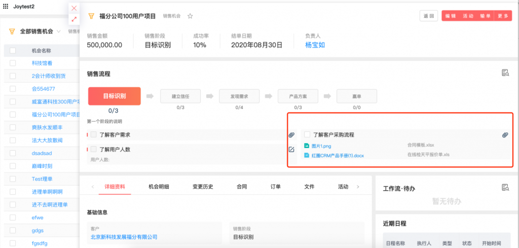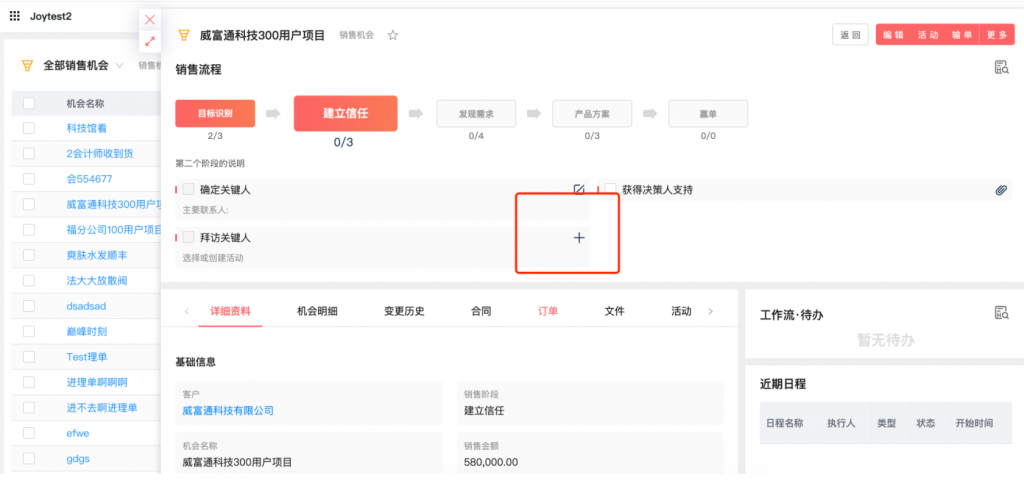 • 支持插入預設的報表:銷售漏斗分析,銷售理單階梯圖,線索轉化統計和目標完成統計