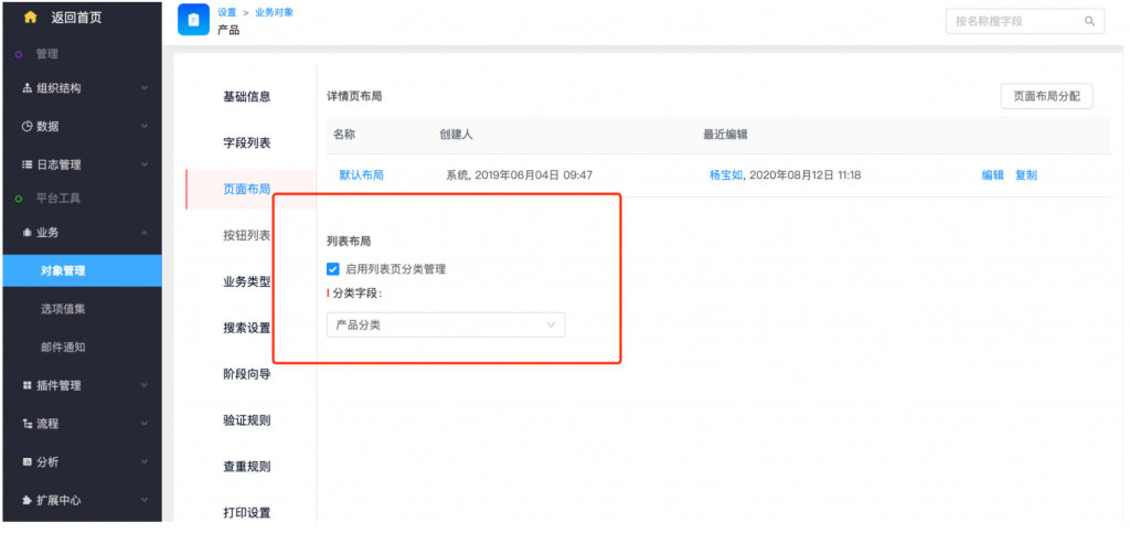 • 系統設置——業務——對象管理——頁面布局——列表布局