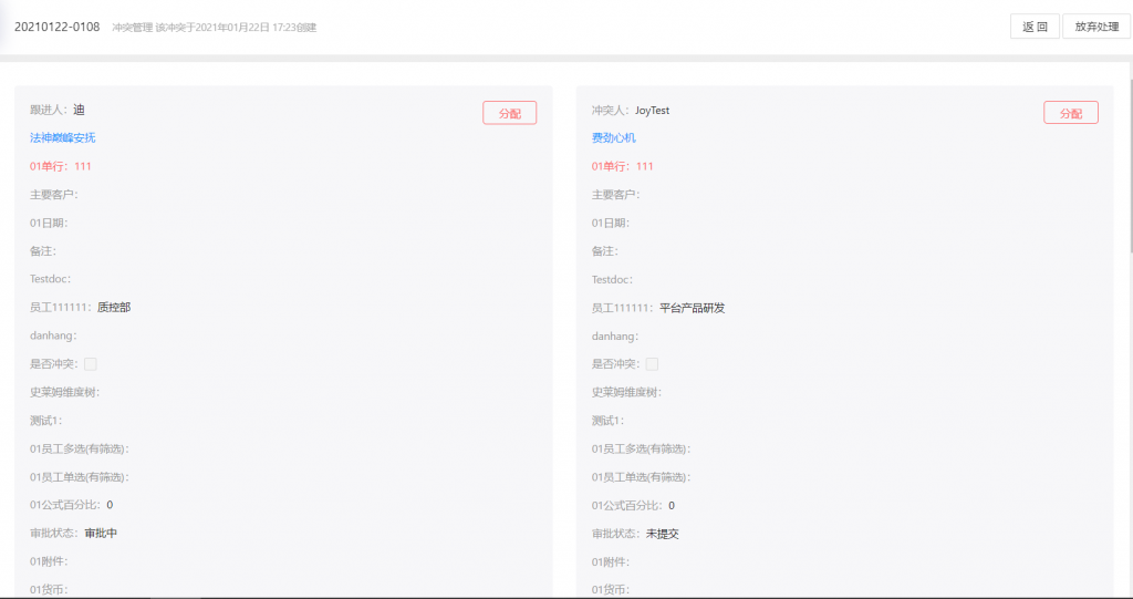 前臺(tái)進(jìn)入沖突管理菜單,進(jìn)入待處理,選擇相應(yīng)沖突進(jìn)行處理
