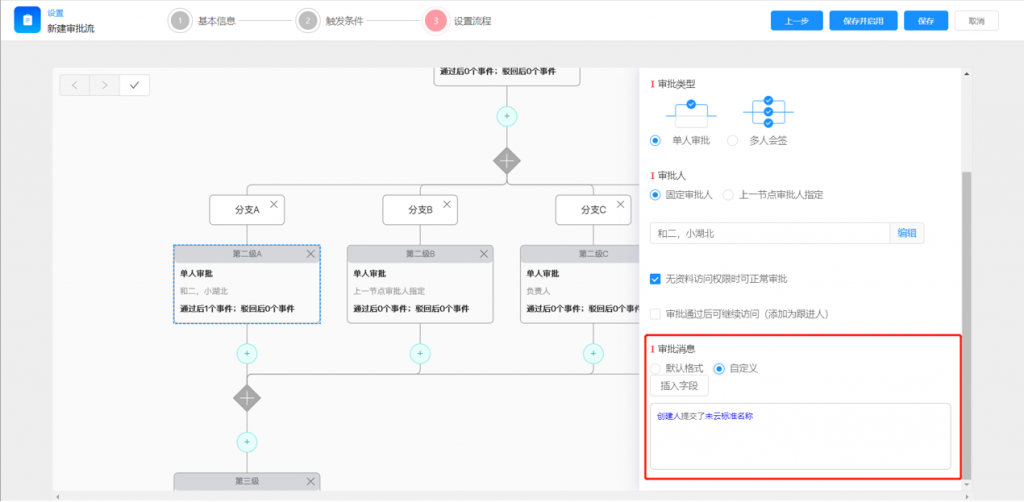 4)審批待辦消息支持自定義配置,可將重點審批字段在待辦消息里透出,方便審批人快速獲取信息,是被優先級等
