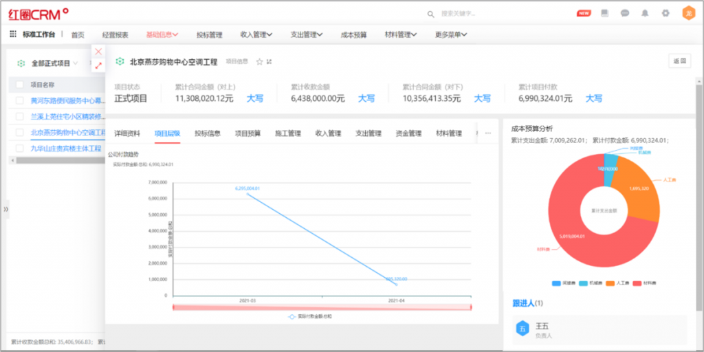 • 以客戶為中心:客戶的360度視圖,在某一個重點客戶的詳情頁面上,可以通過圖表或報表的方式,快速知曉該客戶的歷史訂單成交頻率,服務請求的每月次數,今年的回款情況分析、拜訪跟進情況等