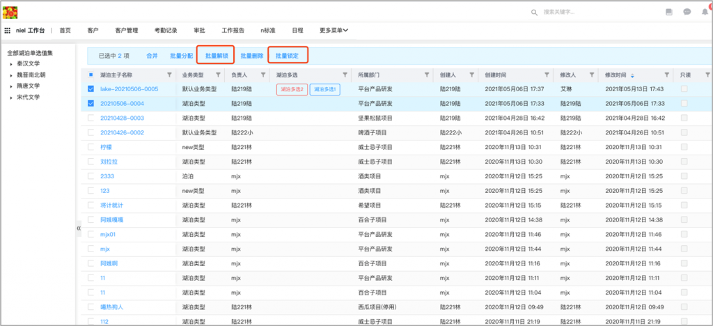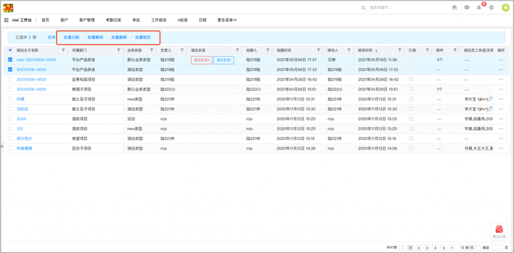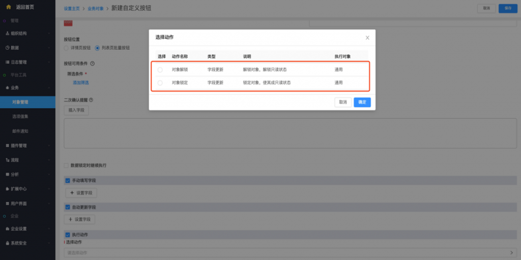 • 列表頁批量按鈕支持執行鎖定和解鎖動作:列表頁批量按鈕支持執行動作,可以執行鎖定和解鎖動作,在前端實現批量鎖定和批量解鎖
