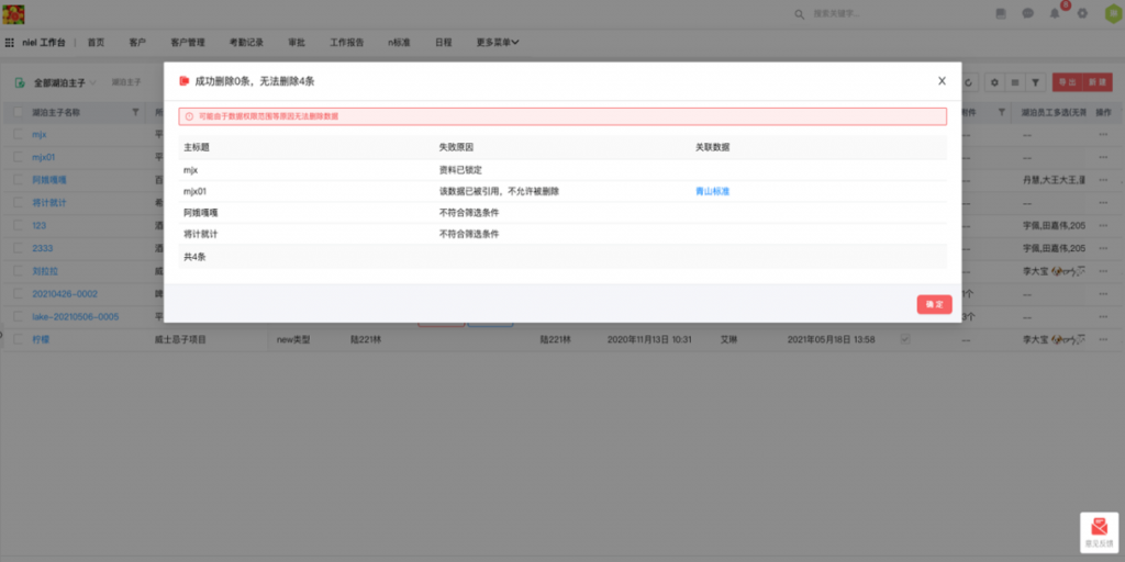 • 批量執行后返回結果:批量按鈕(如批量分配/批量刪除/自定義按鈕)的篩選條件不影響按鈕是否顯示,而是批量執行后返回結果