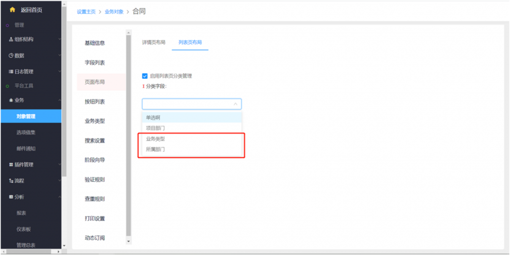 • 列表頁分類支持業務類型和部門:列表頁的分類管理,支持按業務類型和部門進行分類查看