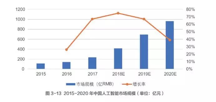 3)市場規模:中國人工智能市場增長迅速,計算機視覺市場規模最大。2017年中國人工智能市場規模達到237億元(計算機視覺占比34.9%),同比增長67%,預計2018年增速將達到75%。