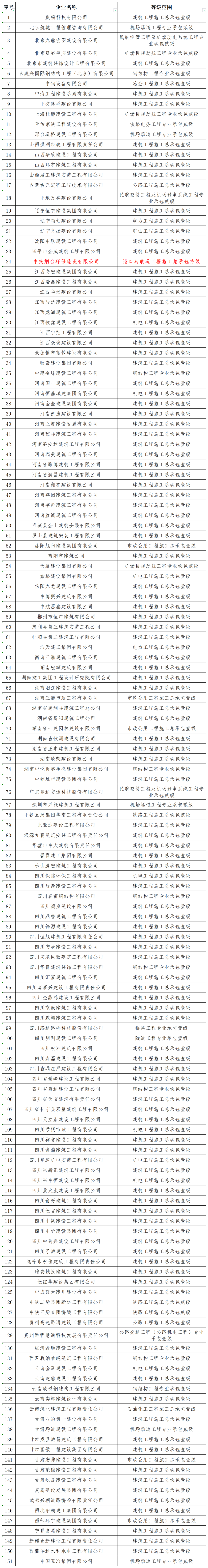 核準建筑業企業資質的單位名單