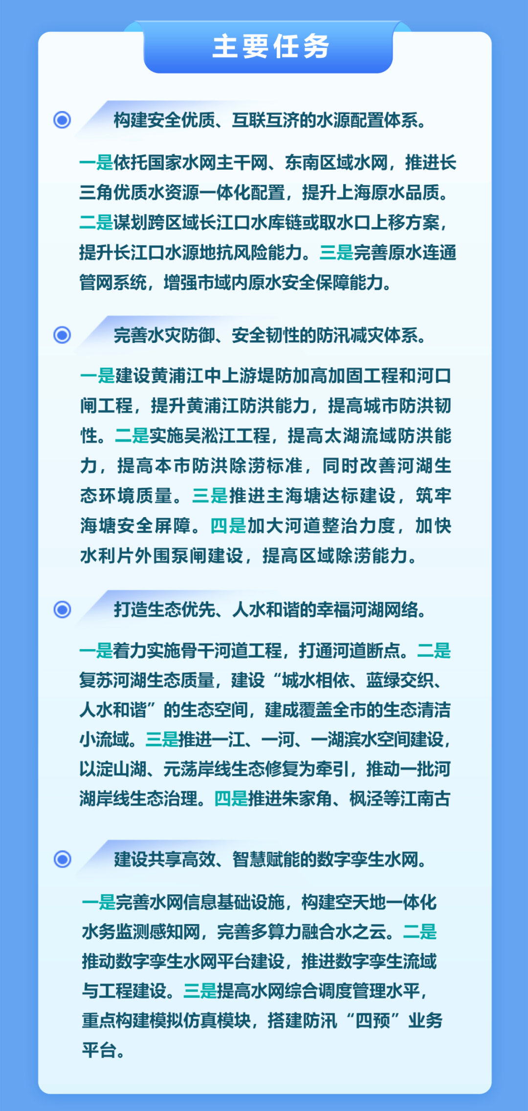 上海市水務局介紹,上海水網(wǎng)建設主要有四項任務: