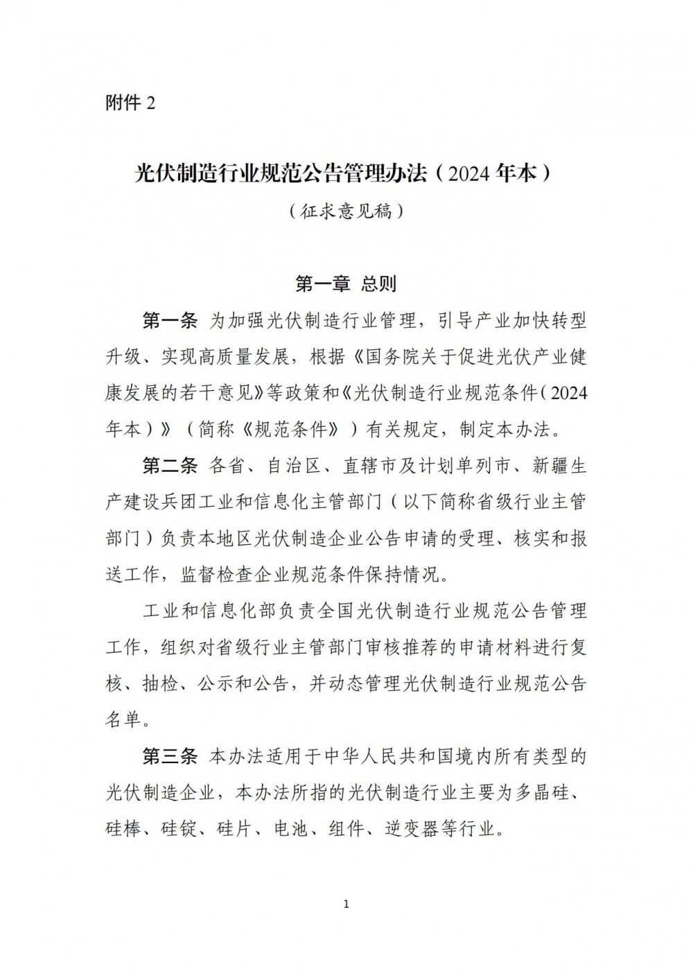 2.《光伏制造行業(yè)規(guī)范公告管理辦法(2024年本)》(征求意見稿)