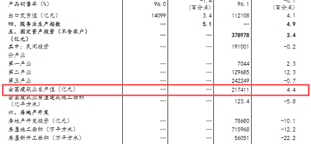 國(guó)家統(tǒng)計(jì)局:全國(guó)建筑業(yè)前三季度總產(chǎn)值217411億元!同比增長(zhǎng)4.4%!