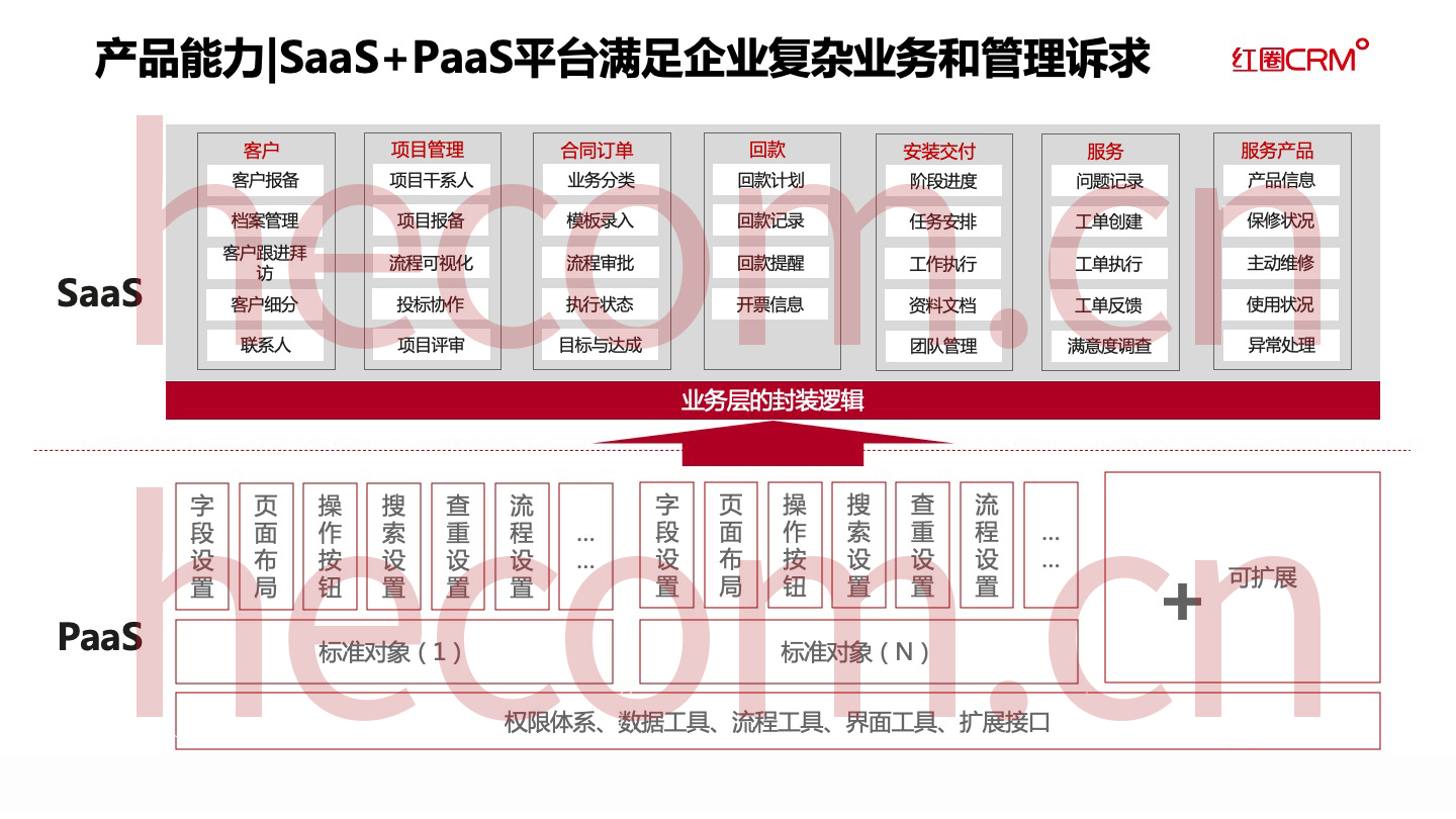 不同行業(yè)、不同類型的企業(yè),其組織架構(gòu)、管理方式和業(yè)務(wù)流程也不盡相同。而且,隨著企業(yè)規(guī)模的不斷擴(kuò)大,客戶關(guān)系管理的復(fù)雜度也在不斷增加,企業(yè)的個(gè)性化訴求也會(huì)進(jìn)一步增多。因此,單純的SaaS軟件已經(jīng)不能完全適應(yīng)客戶的需求,在這種情況下,CRM的PaaS平臺(tái)便應(yīng)運(yùn)而生了。
