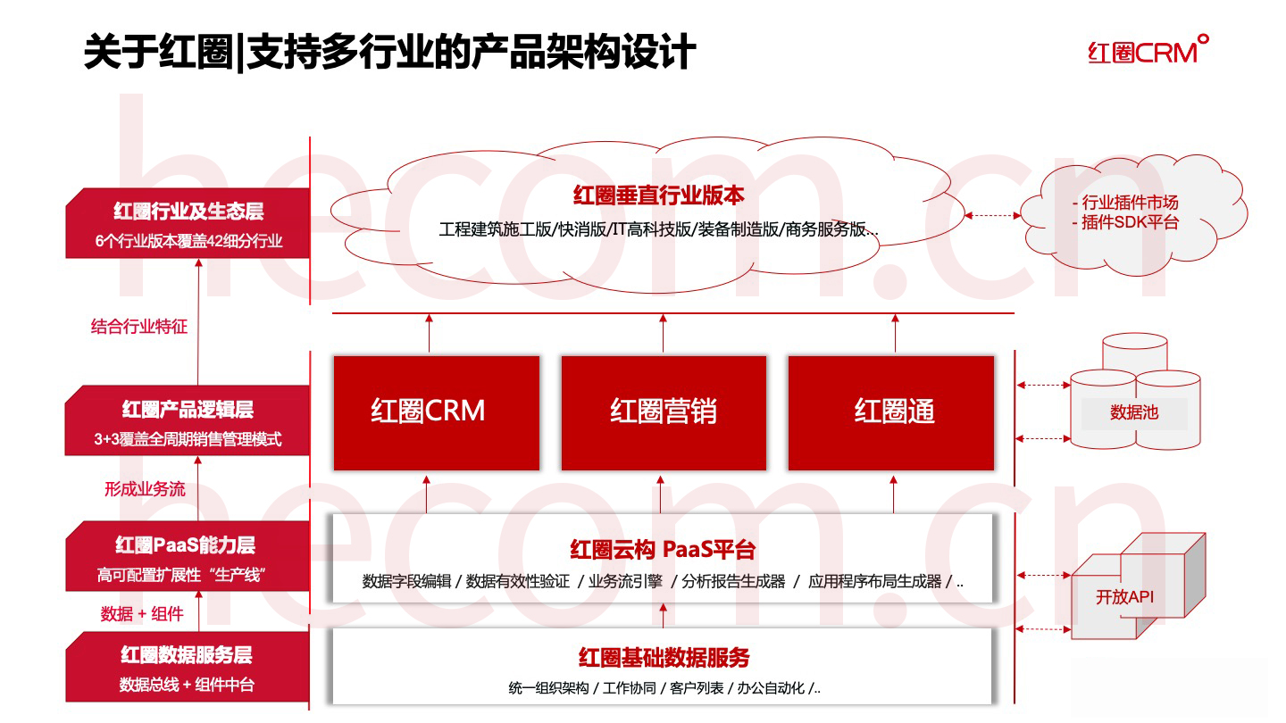 紅圈通過自有 PaaS 平臺(tái)真正實(shí)現(xiàn)了垂直化量身定制和深耕行業(yè)細(xì)分,實(shí)現(xiàn)了為企業(yè)CIO的營銷賦能。